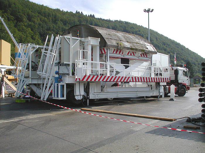 Client : EIFFAGE BOUTGUES TPLocalisation : Tunnel de SANT MARIE AUX MINESAnnée de réalisation : 2003Descriptif : Machine réalisée pour la remise aux normes du Tunnel de SAINT MARIE AUX MINES.
